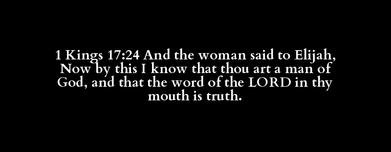 1 Kings 17:24 And the woman said to Elijah, Now by this I know that thou art a man of God, and that the word of the LORD in thy mouth is truth.