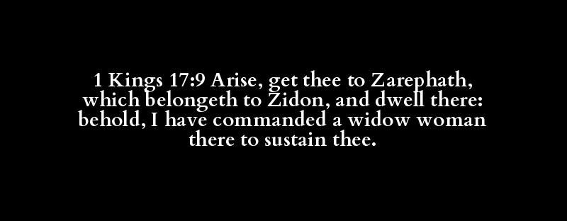 1 Kings 17:9 Arise, get thee to Zarephath, which belongeth to Zidon, and dwell there: behold, I have commanded a widow woman there to sustain thee.