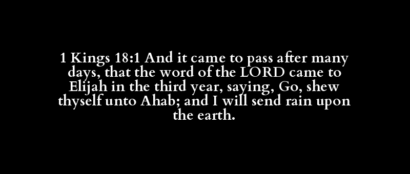 1 Kings 18:1 And it came to pass after many days, that the word of the LORD came to Elijah in the third year, saying, Go, shew thyself unto Ahab; and I will send rain upon the earth.