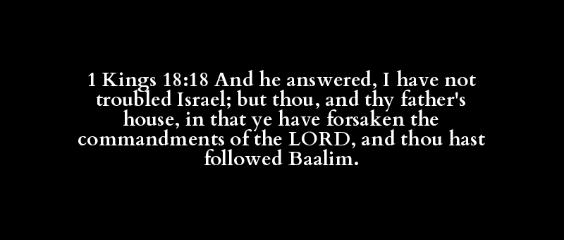 1 Kings 18:18 And he answered, I have not troubled Israel; but thou, and thy father's house, in that ye have forsaken the commandments of the LORD, and thou hast followed Baalim.