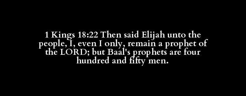 1 Kings 18:22 Then said Elijah unto the people, I, even I only, remain a prophet of the LORD; but Baal's prophets are four hundred and fifty men.