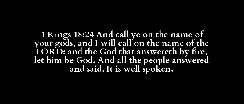 1 Kings 18:24 And call ye on the name of your gods, and I will call on the name of the LORD: and the God that answereth by fire, let him be God. And all the people answered and said, It is well spoken.