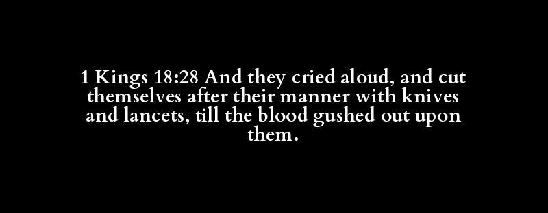 1 Kings 18:28 And they cried aloud, and cut themselves after their manner with knives and lancets, till the blood gushed out upon them.