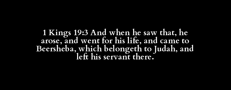 1 Kings 19:3 And when he saw that, he arose, and went for his life, and came to Beersheba, which belongeth to Judah, and left his servant there.