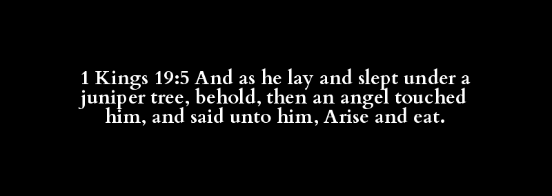 1 Kings 19:5 And as he lay and slept under a juniper tree, behold, then an angel touched him, and said unto him, Arise and eat.