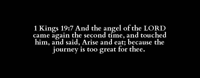 1 Kings 19:7 And the angel of the LORD came again the second time, and touched him, and said, Arise and eat; because the journey is too great for thee.