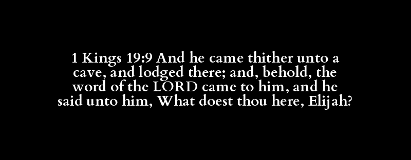 1 Kings 19:9 And he came thither unto a cave, and lodged there; and, behold, the word of the LORD came to him, and he said unto him, What doest thou here, Elijah?