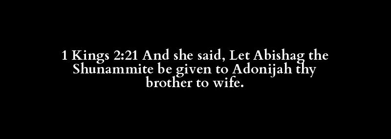 1 Kings 2:21 And she said, Let Abishag the Shunammite be given to Adonijah thy brother to wife.
