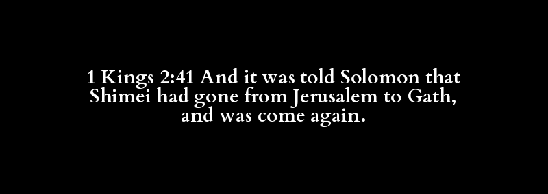 1 Kings 2:41 And it was told Solomon that Shimei had gone from Jerusalem to Gath, and was come again.