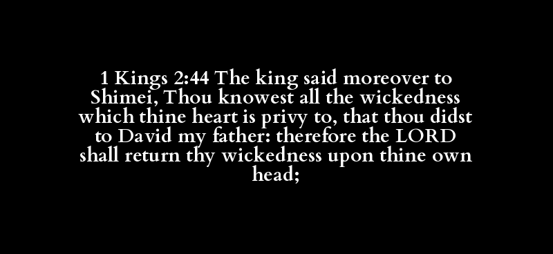 1 Kings 2:44 The king said moreover to Shimei, Thou knowest all the wickedness which thine heart is privy to, that thou didst to David my father: therefore the LORD shall return thy wickedness upon thine own head;