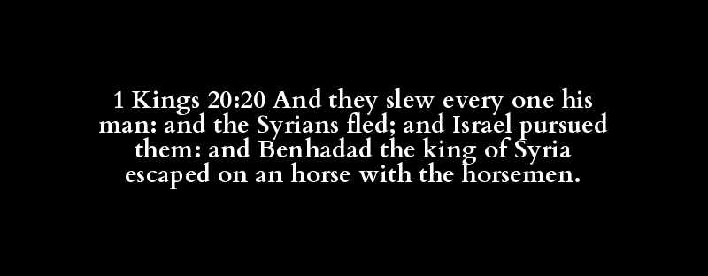 1 Kings 20:20 And they slew every one his man: and the Syrians fled; and Israel pursued them: and Benhadad the king of Syria escaped on an horse with the horsemen.