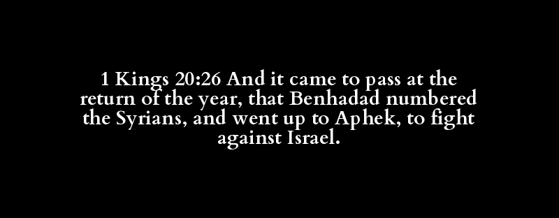 1 Kings 20:26 And it came to pass at the return of the year, that Benhadad numbered the Syrians, and went up to Aphek, to fight against Israel.