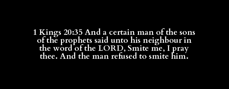 1 Kings 20:35 And a certain man of the sons of the prophets said unto his neighbour in the word of the LORD, Smite me, I pray thee. And the man refused to smite him.
