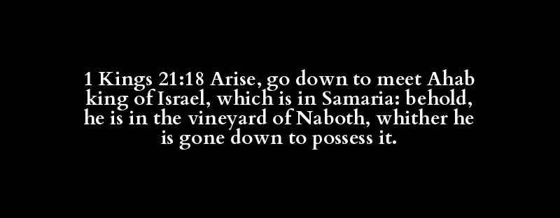 1 Kings 21:18 Arise, go down to meet Ahab king of Israel, which is in Samaria: behold, he is in the vineyard of Naboth, whither he is gone down to possess it.