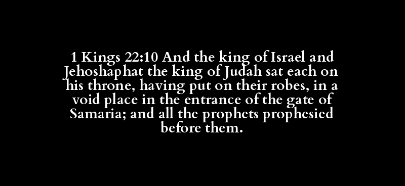 1 Kings 22:10 And the king of Israel and Jehoshaphat the king of Judah sat each on his throne, having put on their robes, in a void place in the entrance of the gate of Samaria; and all the prophets prophesied before them.