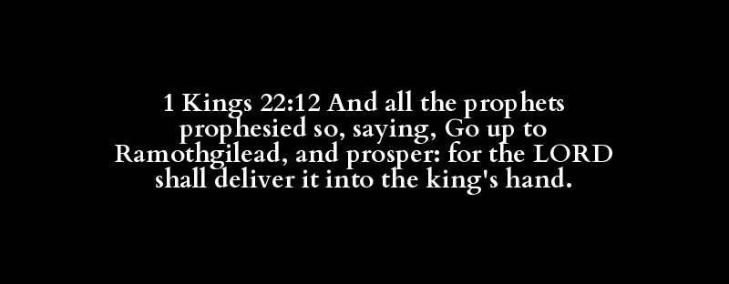 1 Kings 22:12 And all the prophets prophesied so, saying, Go up to Ramothgilead, and prosper: for the LORD shall deliver it into the king's hand.