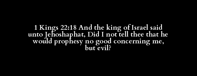 1 Kings 22:18 And the king of Israel said unto Jehoshaphat, Did I not tell thee that he would prophesy no good concerning me, but evil?