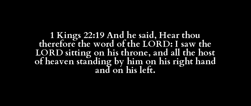 1 Kings 22:19 And he said, Hear thou therefore the word of the LORD: I saw the LORD sitting on his throne, and all the host of heaven standing by him on his right hand and on his left.