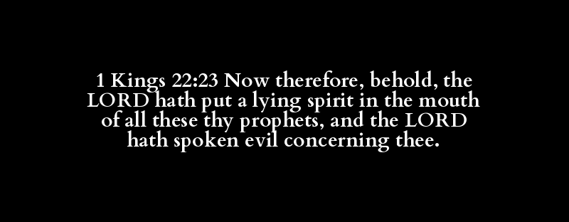 1 Kings 22:23 Now therefore, behold, the LORD hath put a lying spirit in the mouth of all these thy prophets, and the LORD hath spoken evil concerning thee.