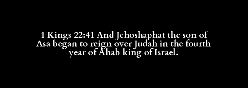 1 Kings 22:41 And Jehoshaphat the son of Asa began to reign over Judah in the fourth year of Ahab king of Israel.