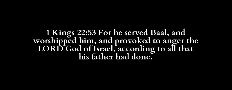 1 Kings 22:53 For he served Baal, and worshipped him, and provoked to anger the LORD God of Israel, according to all that his father had done.