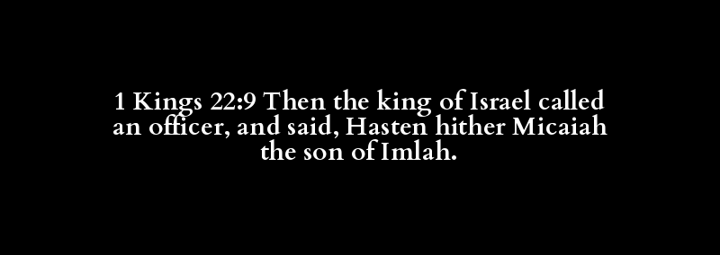 1 Kings 22:9 Then the king of Israel called an officer, and said, Hasten hither Micaiah the son of Imlah.