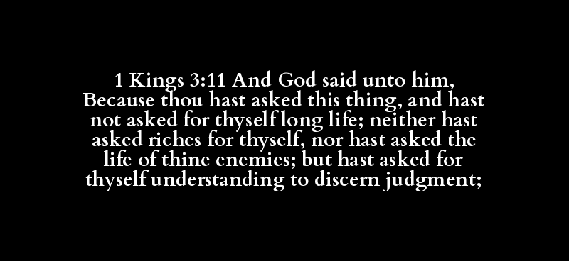 1 Kings 3:11 And God said unto him, Because thou hast asked this thing, and hast not asked for thyself long life; neither hast asked riches for thyself, nor hast asked the life of thine enemies; but hast asked for thyself understanding to discern judgment;