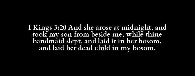 1 Kings 3:20 And she arose at midnight, and took my son from beside me, while thine handmaid slept, and laid it in her bosom, and laid her dead child in my bosom.