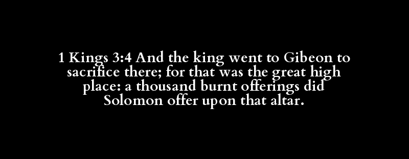 1 Kings 3:4 And the king went to Gibeon to sacrifice there; for that was the great high place: a thousand burnt offerings did Solomon offer upon that altar.