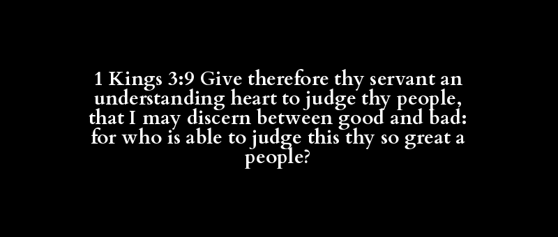 1 Kings 3:9 Give therefore thy servant an understanding heart to judge thy people, that I may discern between good and bad: for who is able to judge this thy so great a people?