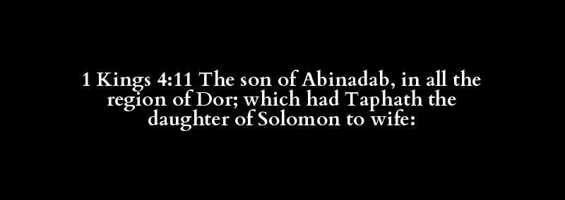 1 Kings 4:11 The son of Abinadab, in all the region of Dor; which had Taphath the daughter of Solomon to wife: