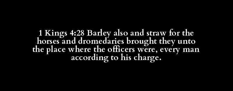 1 Kings 4:28 Barley also and straw for the horses and dromedaries brought they unto the place where the officers were, every man according to his charge.