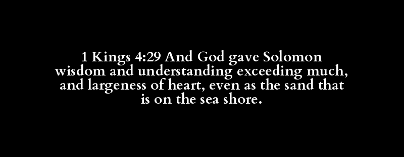 1 Kings 4:29 And God gave Solomon wisdom and understanding exceeding much, and largeness of heart, even as the sand that is on the sea shore.