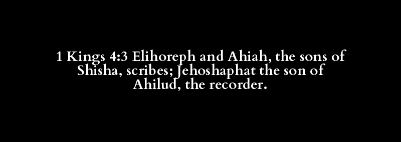 1 Kings 4:3 Elihoreph and Ahiah, the sons of Shisha, scribes; Jehoshaphat the son of Ahilud, the recorder.