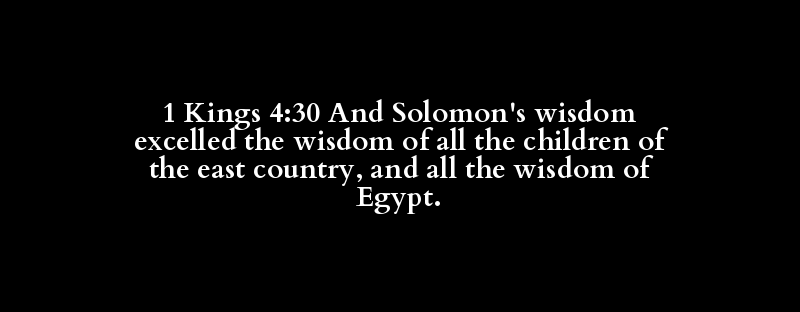 1 Kings 4:30 And Solomon's wisdom excelled the wisdom of all the children of the east country, and all the wisdom of Egypt.