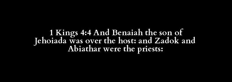 1 Kings 4:4 And Benaiah the son of Jehoiada was over the host: and Zadok and Abiathar were the priests: