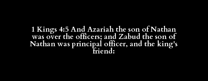 1 Kings 4:5 And Azariah the son of Nathan was over the officers; and Zabud the son of Nathan was principal officer, and the king's friend: