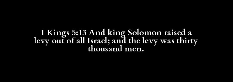 1 Kings 5:13 And king Solomon raised a levy out of all Israel; and the levy was thirty thousand men.