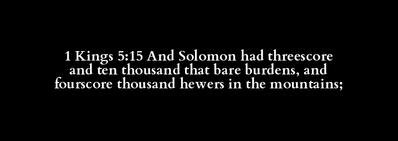1 Kings 5:15 And Solomon had threescore and ten thousand that bare burdens, and fourscore thousand hewers in the mountains;