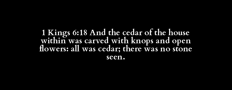 1 Kings 6:18 And the cedar of the house within was carved with knops and open flowers: all was cedar; there was no stone seen.
