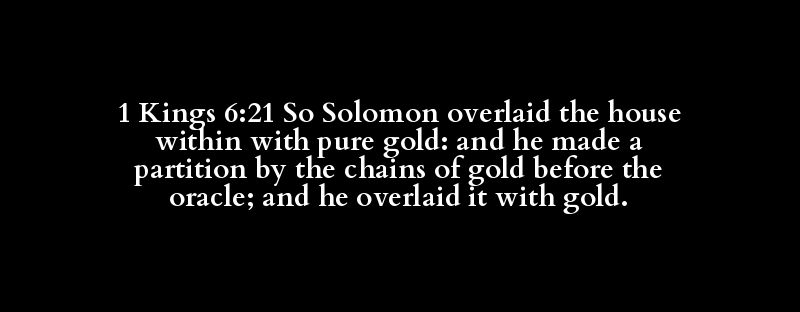 1 Kings 6:21 So Solomon overlaid the house within with pure gold: and he made a partition by the chains of gold before the oracle; and he overlaid it with gold.