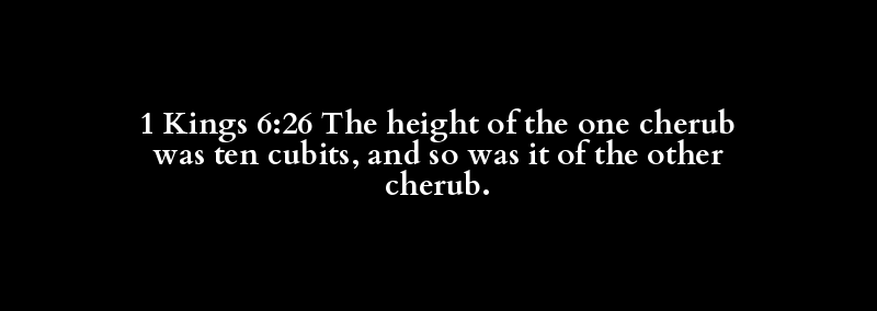 1 Kings 6:26 The height of the one cherub was ten cubits, and so was it of the other cherub.