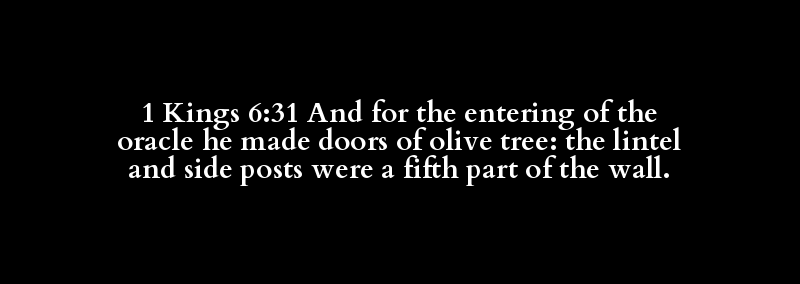 1 Kings 6:31 And for the entering of the oracle he made doors of olive tree: the lintel and side posts were a fifth part of the wall.
