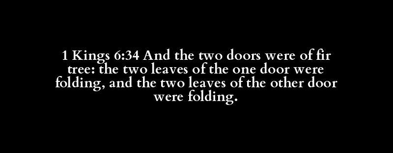 | שְׁנַיִם | דֶּלֶת | בְּרוֹשׁ | עֵץ | שְׁנַיִם | צֵלָע | אֶחָד | דֶּלֶת | גָּלִיל | שְׁנַיִם | קֶלַע | שֵׁנִי | דֶּלֶת | גָּלִיל |