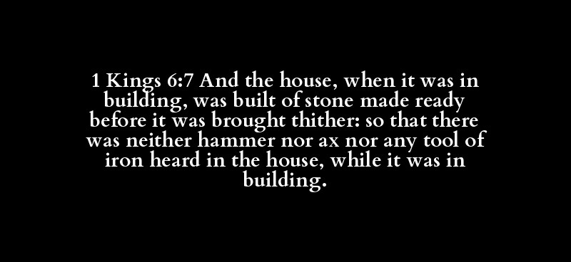 1 Kings 6:7 And the house, when it was in building, was built of stone made ready before it was brought thither: so that there was neither hammer nor ax nor any tool of iron heard in the house, while it was in building.