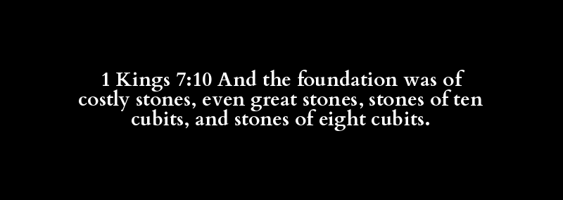 | יָסַד | יָקָר | אֶבֶן | גָּדוֹל | אֶבֶן | אֶבֶן | עֶשֶׂר | אַמָּה | אֶבֶן | שְׁמֹנֶה | אַמָּה |