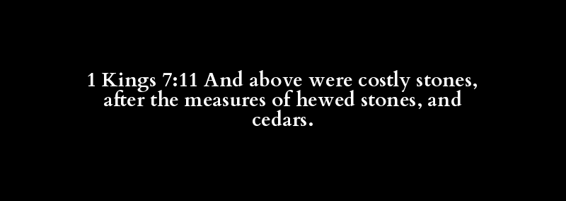 1 Kings 7:11 And above were costly stones, after the measures of hewed stones, and cedars.