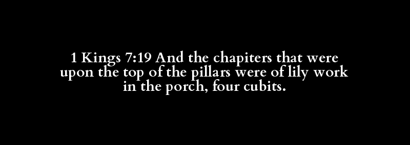 1 Kings 7:19 And the chapiters that were upon the top of the pillars were of lily work in the porch, four cubits.