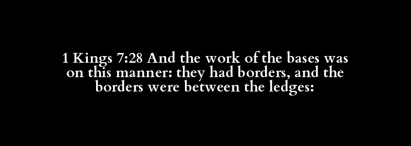 1 Kings 7:28 And the work of the bases was on this manner: they had borders, and the borders were between the ledges: