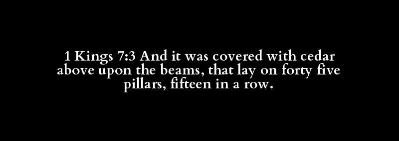 1 Kings 7:3 And it was covered with cedar above upon the beams, that lay on forty five pillars, fifteen in a row.